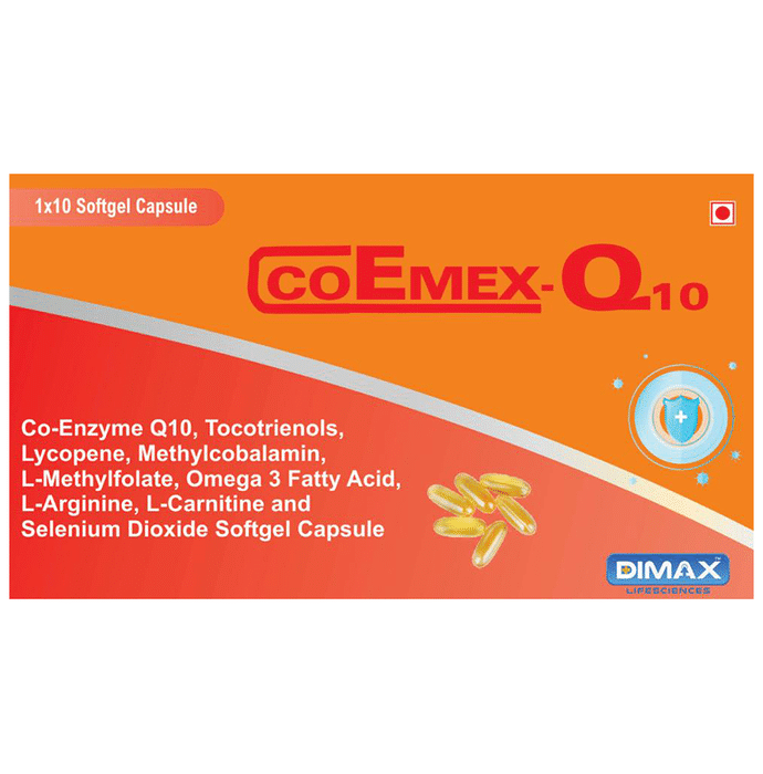 Coemex-Q10 Softgel Capsule Coemex-Q10 Softgel Capsule contains L-carnitine that enhances your workout by releasing energy throughout your workout. It helps you improve your physique and help to push yourself to your limits. It is potent in burning fats that help convert stored body fat to fuel by transporting stored fat to the muscle, where it can be burned as energy. This helps muscle growth and weight loss.