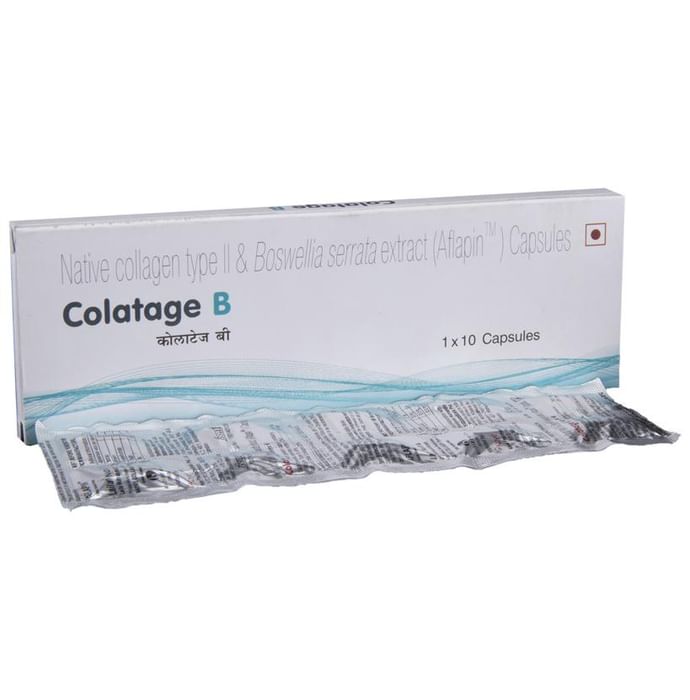 Colatage B Capsule Colatage B Capsule contains Aflapin derived from Boswellia serrata extract (20%) 50mg and Native Collagen Type II (25%) 20mg.