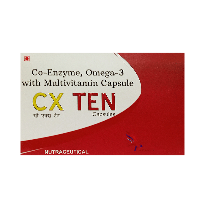 CX Ten Capsule CX Ten Capsule contains Omega 3 fatty acids, which aid in the promotion of cognitive health and the improvement of visual health. It helps to improve cardiac health and controls blood pressure levels. It contains Lycopene, which helps to regulate cholesterol levels in the blood.
