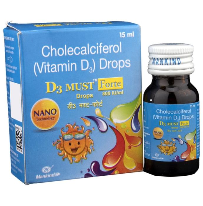 D3 Must Forte Drop D3 Must Drops is a Vitamin D3 Oral drops for kids. It contains Cholecalciferol as the active ingredient. - It is a nutritional replacement therapy to increase lower Vitamin D3 levels in the body Key benefits/uses of D3 Must Drops - It is a dietary aid, to compensate the Vitamin D deficiency - Vitamin D is required for forming and maintaining healthy bones - It also helps the body to use more of the calcium found in foods and supplements - Vitamin D with calcium is used to treat or prevent bone loss i.e. osteoporosis - It is also used in kidney disease to keep calcium levels normal and allow normal bone growth Direction for use/Dosage: - As directed by the physician Recommendation: - For Kids Only Indication: - Vitamins D3 deficiency Storage instruction: - Store in a cool, dry & dark place - Protect from direct sunlight Safety information: - Read the label carefully before use - Do not exceed the recommended dose - Keep out of the reach and sight of children