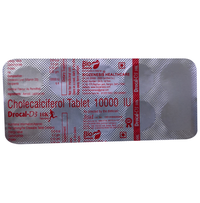 Drocal-D3 10K Tablet Drocal-D3 10K Tablet can help deal with vitamin D deficiency in the body. It can help in the proper functioning of the body. Moreover, it can help maintain bone and joint health.