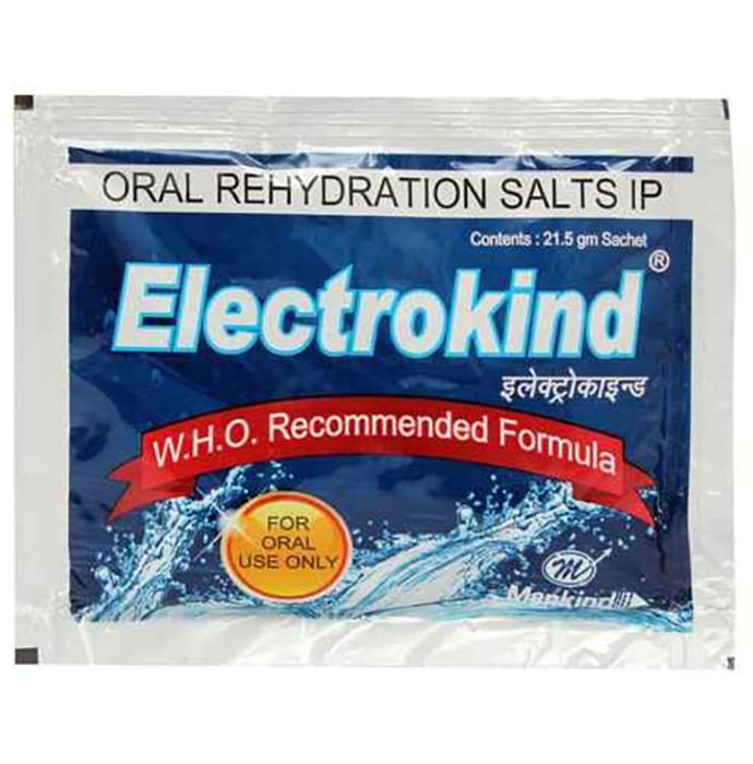 Electrokind Powder is useful to reverse dehydration in the cases where IV administration is impractical or cost-prohibitive. It is used to help treat electrolyte imbalance, kidney stones, and acidity. | Key Ingredients: Dextrose Potassium chloride Sodium chloride Sodium citrate | Key Benefits: It is useful in the treatment of the electrolyte imbalance The powder is helpful in the treatment of gastric problems and acidity It is used to help treat low Potassium levels, low Magnesium levels, low Calcium levels | Direction For Use: Take Electrokind Powder twice daily or as directed by the physician. | Safety Information: Read the label carefully before use Store in a cool and dry place, away from sunlight Store at a temperature below 25-degree Celsius and 40 % humidity in cool and dry place Do not exceed the recommended dose