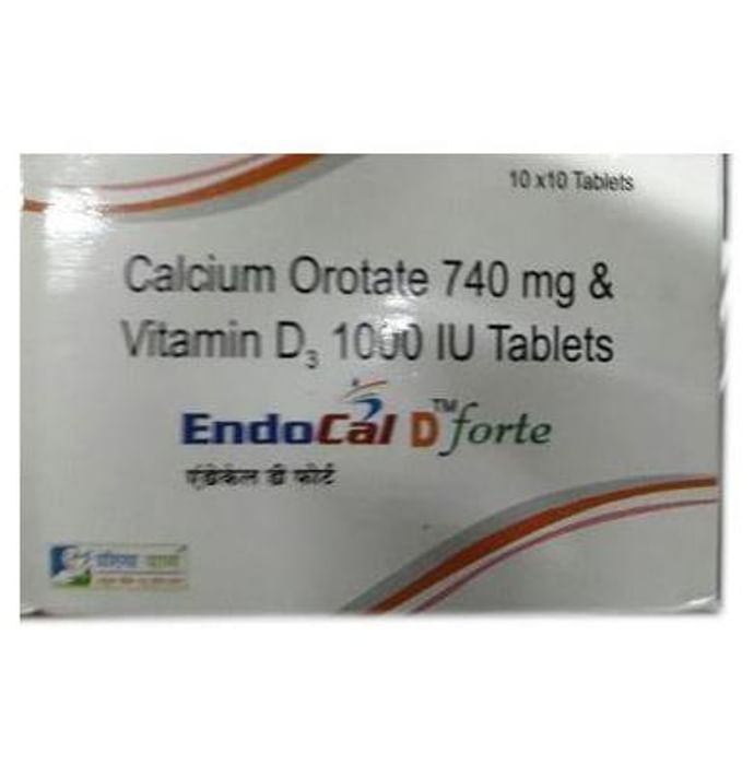 Endocal D Forte Tablet is used for the treatment of osteoporosis, osteomalacia, Vitamin D deficiency and other conditions. | Key Ingredients: Calcium orotate Vitamin D3 | Key Benefits: Vitamin D3 is used forBone strength and prevention of bone disorders like rickets, osteomalacia Calcium citrate malate is a water-soluble calcium supplement used to treat low calcium levels and osteoporosis | Directions For Use: As prescribed by the Physician | Safety Information: Store in a cool‚ dry and dark place Protect from the direct sunlight Keep out of the reach of children Do not exceed the daily recommended dose
