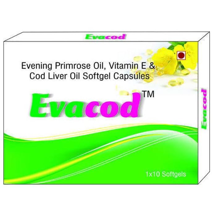 Evacod Softgel Capsules is your complete daily health supplement, packed with essential vitamins and minerals that boost immunity, maintain cardiovascular health, improve fitness and strength, enhance memory and concentration and support overall wellbeing. | Key Ingredients: Evening primrose oil Vitamin E Cod liver oil | Key Benefits: It helps in keeping the digestive tract healthy It is used to strengthen the immune system These tablets support a natural, healthy gut and help enhance your digestive function | Directions For Use: Use as directed by the physician. | Safety Information: Read the label carefully before use Do not exceed the recommended dosage Store in a cool and dry place away from direct sunlight Keep out of reach of children