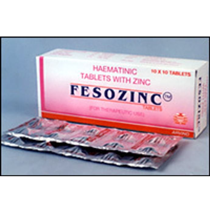 Fesozinc Tablet Fesozinc contains Ferrous ascorbate,Folic acid ,Zinc and Vitamin B12 Ferrous ascorbate is a source of Iron , Iron transports oxygen throughout the body and maintains red blood cells, thus making an individual feel energetic and preventing anemia. Folic acid is essential to numerous bodily functions ranging from nucleotide biosynthesis to the remethylation of homocysteine. It is especially important during periods of rapid cell division and growth. Both children and adults require folic acid to produce healthy red blood cells and prevent anemia. Zinc sulphate and Vitamin B12 are of particular importance during pregnancy. Whereas, Zinc is essential for normal foetal growth. Vitamin B12 promotes the initiation and maturation of blood cells supporting the pregnancy. Fesozinc used in the treatment of:- Iron Deficiency Anaemia Iron deficiency anaemia and nutritional anaemia that occurs especially during pregnancy and lactation Iron deficiency due to chronic blood loss or low intake of iron Fesozinc can be taken orally with water, after meals. Use under medical supervision.