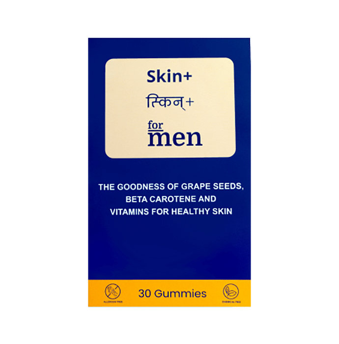 ForMen Skin+ Gummies are an excellent vitamin and skin protection. It feeds the skin and gives it a distinct and healthy appearance. It protects against dangerous UV radiation and contaminants in the environment. It is a unique composition of resveratrol, grape and vitamin seed extract (A, C, E and Biotin). The “+” (Skin+) signifies advanced and effective formula with the highest bio-availability and absorption, to keep your skin rejuvenated, hydrated, youthful and healthy. | Key Ingredients: Boron Shatavari Selenium Kaunch Beej Zinc Sulphate Safed Musli | Key Benefits: Skin + gummies contain resveratrol, grape seed extract and a vital vitamin mixture (A, C, E and Biotin) to support firm and young skin collagen development Skin+ gummies protect your skin from damaging UV radiation and pollution 24 hours a day The Skin+ gummies contain ageing and hyperpigmentation phytonutrients from UV radiation | Directions For Use: 1-2 gummies per day or as directed. | Safety Information: Read the label carefully before use Store in a cool dry place It is a natural product with no significant side effects Not recommended for pregnant women and children Consume as per specified dosage or as advised by the physician