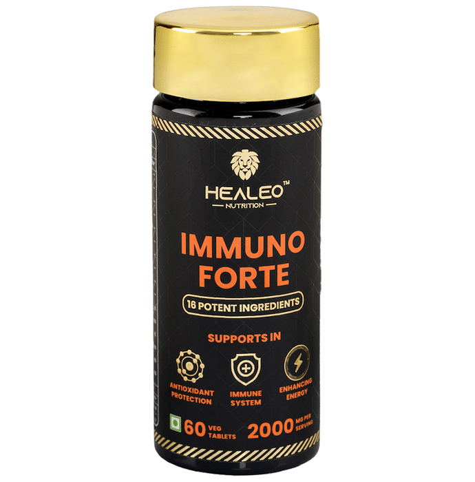 Healeo Nutrition Immuno Forte 2000mg Veg Tablet Healeo Nutrition Immuno Forte 2000mg Veg Tablet contains 16 potent ingredients with antioxidant properties that increase energy and boost immunity. It helps prevent infections, boosts energy levels and strengthens the immune system. It supports white blood cell production and builds the body's defence system.