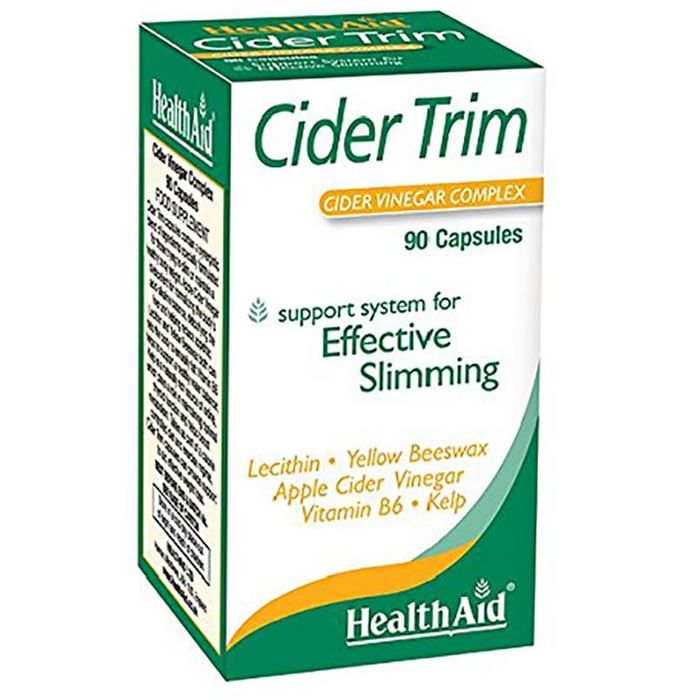 Cider Trim Capsules contain a synergistic blend of ingredients specially formulated for those trying to slim or maintain a healthy body weight. Apple Cider Vinegar is excellent for normalizing the body's acid-alkaline balance, detoxifying the liver and helping reduce appetite; Lecithin and Yellow Beeswax both can help the body to emulsify fat; Vitamin B6 helps to support a healthy water balance; K help is a naturally rich source of iodine, which plays a role in maintaining optimal thyroid function and helps boosts metabolism. Taken as part of a calorie controlled diet and exercise regime, Cider Trim capsules can provide support to aid effective weight loss. Key Benefits: Boosts your body's metabolism Helps in weight loss Maintains the cholesterol level Reduces appetite Direction of use: Adults and children over 16 years of age, two capsules three times a day half an hour before meals. Do not exceed recommended daily intake unless advised by a suitably qualified person. Use under medical supervision