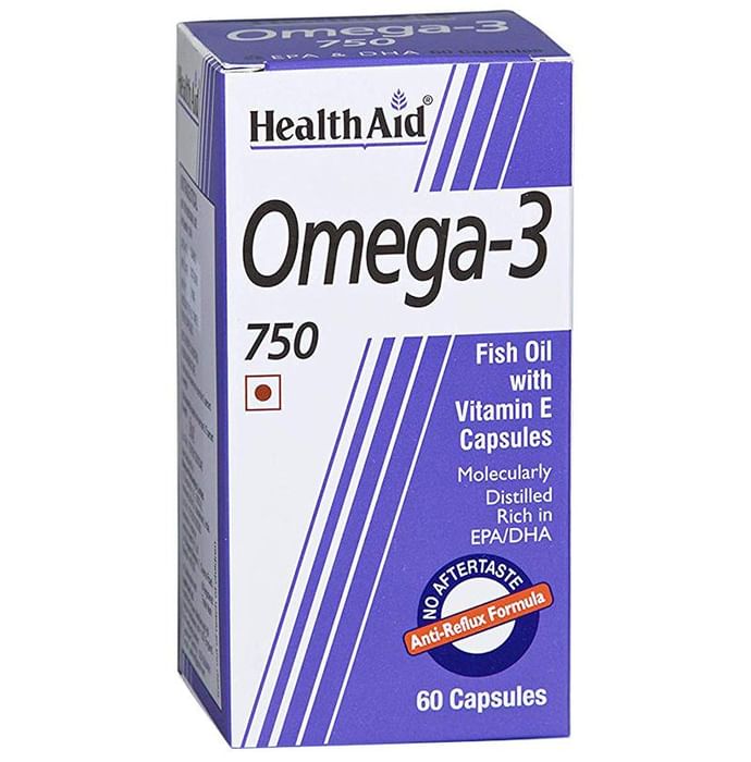 Healthaid Omega-3 750mg Capsule Healthaid Omega-3 Capsule are specially formulated using Norwegian salmon fish oil to give a highly concentrated source of Omega-3 Polyunsaturates, EPA and DHA in their free from for improved digestibility, assimilation and efficacy. A valuable supplement to help maintain circulation and cholesterol control as well as improve general wellbeing (heart, skin, joints) and brain function. Key Benefits: Enriched with omega-3 Provides you with a healthy and glowing skin Enhances growth of healthy and strong hair Support the cardiovascular, reproductive and nervous systems Direction of use: Children over 6 years one capsule daily; Adults and children over 12 years, one to three capsules daily. Use under medical supervision