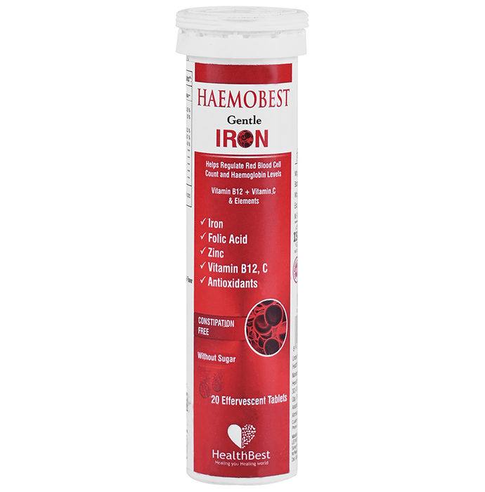 HealthBest Haemobest Gentle Iron Effervescent Tablet Strawberry HealthBest Haemobest Gentle Iron Effervescent Tablet is a gentle iron supplement with zinc, selenium, folic acid, vitamin B12, vitamin C and vitamin E formulated to deliver an ideal amount of iron to the body while remaining gentle on the stomach. Iron contributes to the normal formation of red blood cells and haemoglobin and normal oxygen transport in the body. Haemoglobin carries oxygen to the brain, heart, muscles, and to tissues throughout the body.