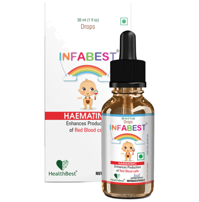 HealthBest Infabest Haematinic Drop is an easy way to help toddlers and babies get the required essential multivitamins and minerals. It provides iron from a natural source that is easily absorbed. The drops keep toddlers energised all day by boosting their iron and immunity levels. | Key Ingredients: Iron Zinc | Key Benefits: It provides iron from a natural source which is easily absorbed Keeps toddlers energised all day long by boosting iron and immunity It enhances the production of red blood cells in the body Helps with toddler’s physical growth and healthy development | Directions For Use: 1 ml for infants below one year or as recommended by the physician. | Safety Information: Store in a cool and dry place away from direct sunlight Keep out of reach of children Do not exceed the recommended dosage Do not consume in the safety seal is missing or damaged