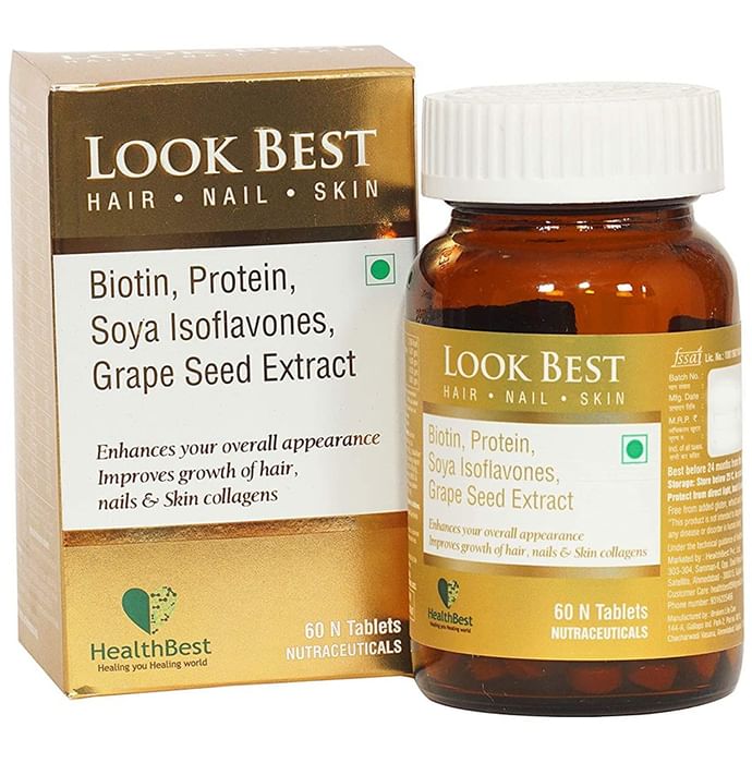 HealthBest Look Best Hair Nail Skin Tablet HealthBest Look Best Hair Nail Skin Tablet enhances your overall appearance. It improves the growth of hair, nails and skin collagens. It thickens hair, nails and beautifies skin. Biotin or Vitamin B7 is a water-soluble vitamin that's a part of the vitamin B complex - a group of key nutrients.