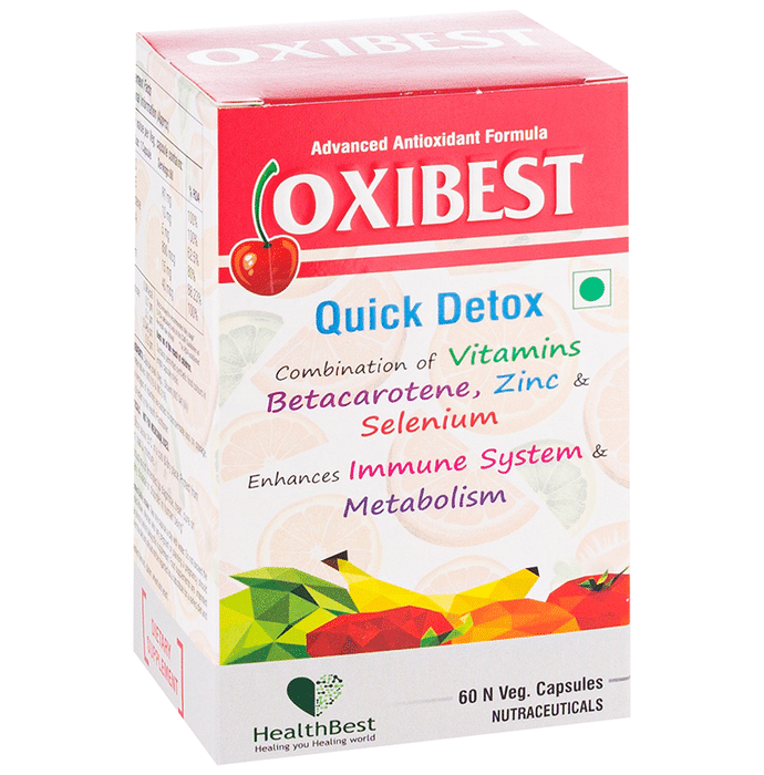 HealthBest Oxibest Quick Detox Veg Capsule HealthBest Oxibest Quick Detox Veg Capsule is an ideal liver tonic that provides the most optimal liver support for all problems. It works as an effective medicine for rejuvenating liver and lipid metabolism in the liver The unique natural liver supplements blend promotes overall liver function. This immune support liver capsule contains appetizer herbs, which help in improving digestion and appetite.