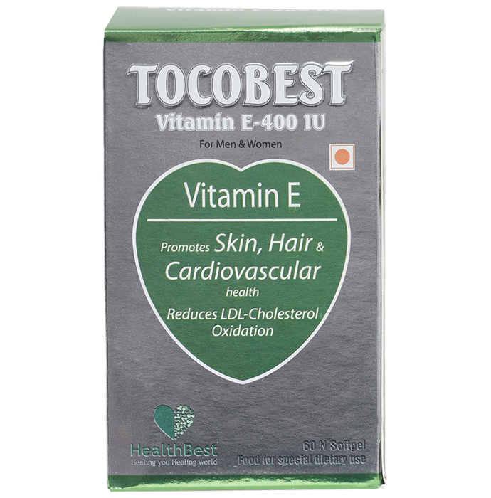 HealthBest Tocobest Vitamin E 400IU Softgel HealthBest Tocobest Vitamin E 400IU Softgel contains vitamin E which is key for strong immunity and healthy skin and eyes. In recent years, Vitamin E supplements have become popular antioxidants. These are substances that protect cells from damage. Many people use vitamin E supplements for the vitamin's antioxidant properties. Established benefits of vitamin E supplements are in people who have an actual deciency. Vitamin E deficiencies are rare, but they’re more likely in people who have diseases, such as digestive problems and cystic fibrosis. People on very low-fat diets may also have low levels of vitamin E.