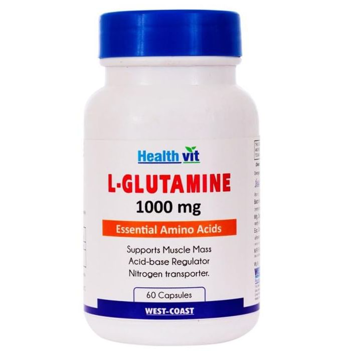 HealthVit L- Glutamine 1000mg Capsule Healthvit L-Glutamine 1000mg capsule contains L-glutamine as its active ingredient. Key benefits of Healthvit L-Glutamine 1000mg capsule: It is necessary for rapidly dividing cells, including those of the gut and immune system. The function of glutamine in stimulating glycogen synthase, the enzyme which controls the synthesis and storage of glycogen fuel in muscles and liver. Direction for use: As a dietary supplement for adults, take 1 or 2 tablet daily between meals, or as directed by health practitioner. Safety information: Pregnant, nursing women or individual taking any medications, consult the doctor before use. No artificial colour, flavours or preservative added, no chemical solvents. Use under medical supervision.