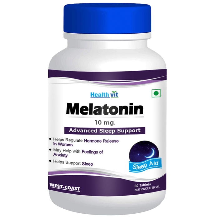 HealthVit Melatonin 10mg Tablet HealthVit Melatonin 10mg Tablet helps relieve mental stress and anxiety and helps to enhance your mood and calm your mind. There can be multiple reasons for disturbance in the sleep cycle, e.g. Jet lag, working in different shifts etc. It is carefully curated to give you the best support to help improve your sleep cycle. It is non-addictive and has no side effects.