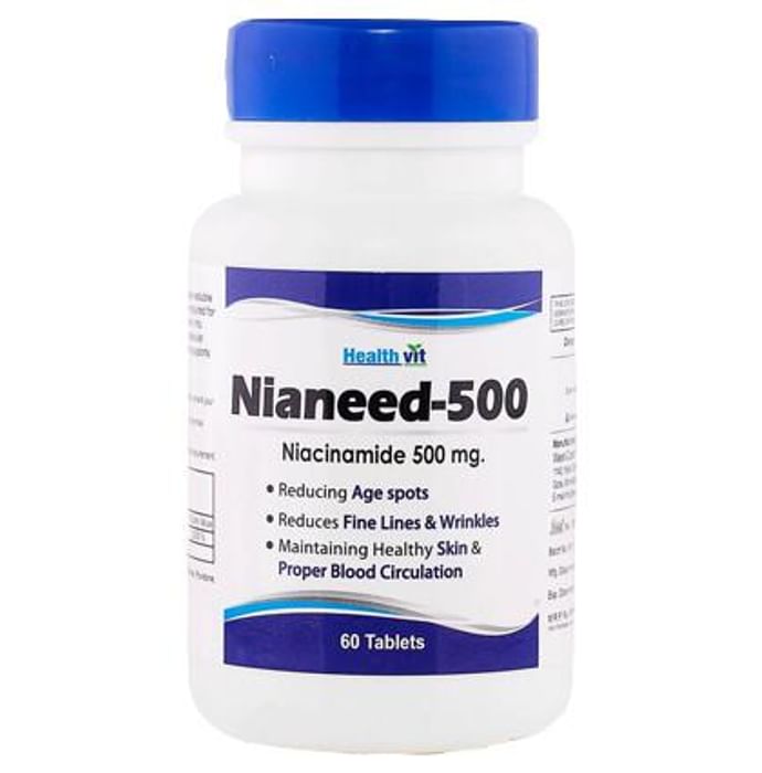 Healthvit Nianeed-500 capsules contain niacinamide. It can be found in many foods, including meat, fish, milk, eggs, green vegetables, cereal grains and yeast. Key benefits of Healthvit Nianeed-500 capsules: Niacin is used for high cholesterol. It is also used along with other treatments for circulation problems, migraine headache, dizziness, and to reduce the diarrhoea associated with cholera. Niacin is also used for preventing positive urine drug screens in people who take illegal drugs. Niacin or niacinamide is used for preventing vitamin B3 deficiency and related conditions such as pellagra. It is used for schizophrenia, hallucinations due to drugs, Alzheimer’s disease and age-related loss of thinking skills, chronic brain syndrome, depression, motion sickness, alcohol dependence, and fluid collection (edema). Direction to use: Take 1 capsule daily with the meal. Safety information: Pregnant, nursing women or individual taking any medications, consult the doctor before use. No artificial colour, flavours or preservative added, no chemical solvents. Use under medical supervision.