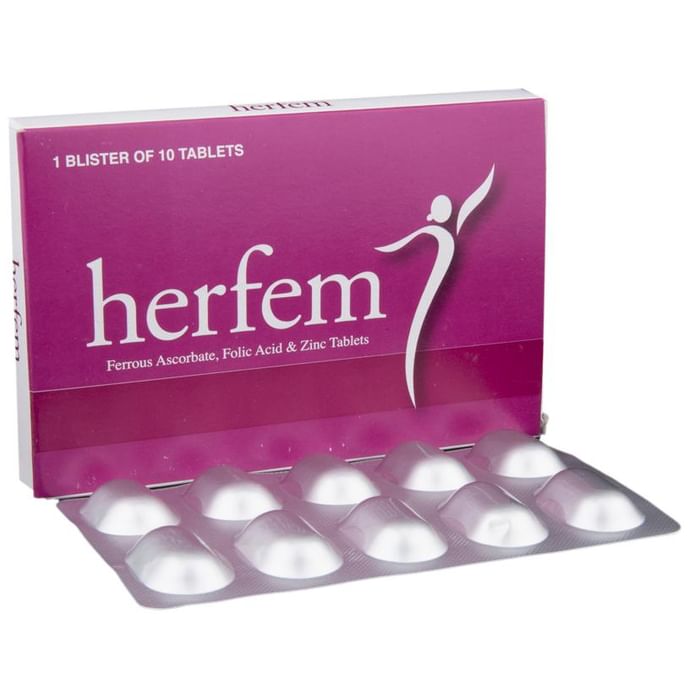 Herfem tablet is Nutritional supplement which contains Elemental Iron, Zinc and Folic Acid. Role of key ingredients:- Elemental Iron is source of iron,Iron transports oxygen throughout the body and maintains red blood cells, thus making an individual feel energetic and preventing anemia. Folic acid is essential to numerous bodily functions ranging from nucleotide biosynthesis to the remethylation of homocysteine. It is especially important during periods of rapid cell division and growth. Both children and adults require folic acid to produce healthy red blood cells and prevent anemia. Zinc is essential for normal foetal growth. Herfem tablet used in the treatment:- Nutritional deficiency anemia during pregnancy General weakness Iron deficiency anaemia Direction for use:- Herfem tablet can be taken orally with water, after meals. Use under medical supervision.
