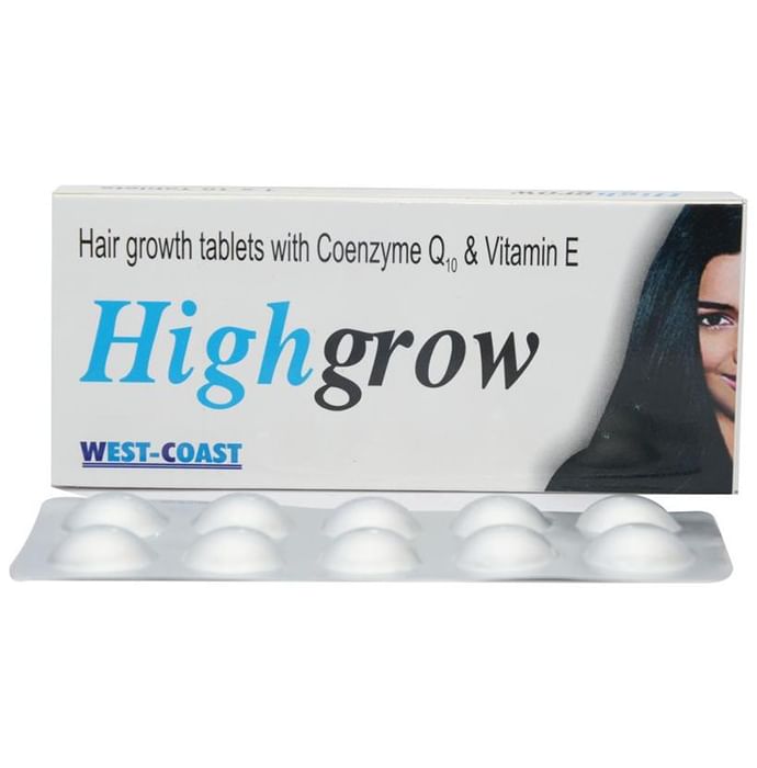 Highgrow For Hair growth Tablets with Coenzyme Q10 & Vitamin E Highgrow Hair growth Tablets with Coenzyme Q10 and Vitamin E is a hair care supplement that enables healthy hair growth in both men and women. It promotes hair growth and reduces hair fall and damage. This tablet supplements your hair with Biotin along with essential vitamins and minerals.