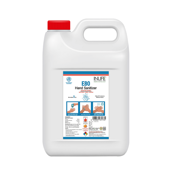 Inlife E80 Hand Sanitizer Inlife E80 Hand Sanitizer with 80% alcohol content, is the perfect solution to on the go protection from germs and infections. It kills 99.9% of all the germs, viruses and bacteria that are transferred from direct contact with an infected person or from an external source while you eat outside, use a public toilet or through any other kind of environmental contact.