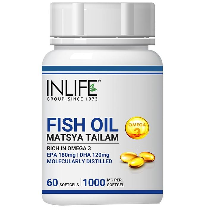 Inlife Fish Oil Omega 3 Softgels Inlife Fish Oil Omega 3 Softgels is an ultimate natural source of omega 3. It helps to maintain a healthy body for overall wellness. Mood, power, skin, hair, heart health, and joint relief may be the benefits of high-quality omega 3. Fish oil must have an adequate amount of EPA and DHA to have a positive effect on your health. Inlife Fish Oil Omega 3 Capsule 1000mg is manufactured in an ISO, WHO-GMP and AYUSH GMP certified facility.
