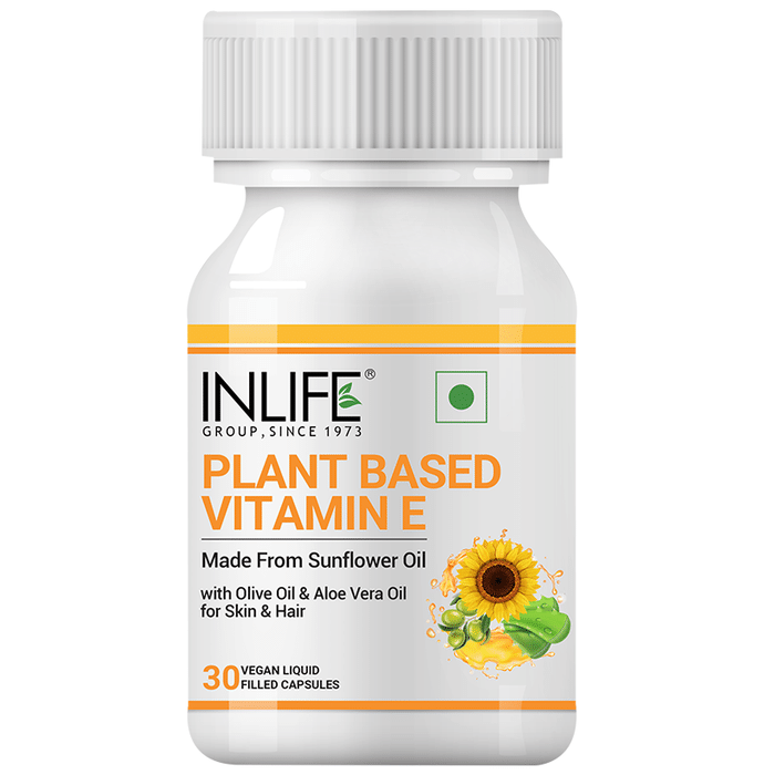 Inlife Plant Based Vitamin E Vegan Liquid Filled Capsule Inlife Plant Based Vitamin E Vegan Liquid Filled Capsule contains the vitamin E from the sources such as sunflower oil, olive oil and aloe vera oil. It contains naturally occurring vitamin E which is better absorbed than the synthetic version. It may promote healthy skin, antioxidants and a better immune system. Vitamin E is an essential nutrient required by the body for overall health and it may support the body to fight against cell damage as well as free radicals that cause oxidative stress in the body that can be a contributing factor to the premature ageing of cells.