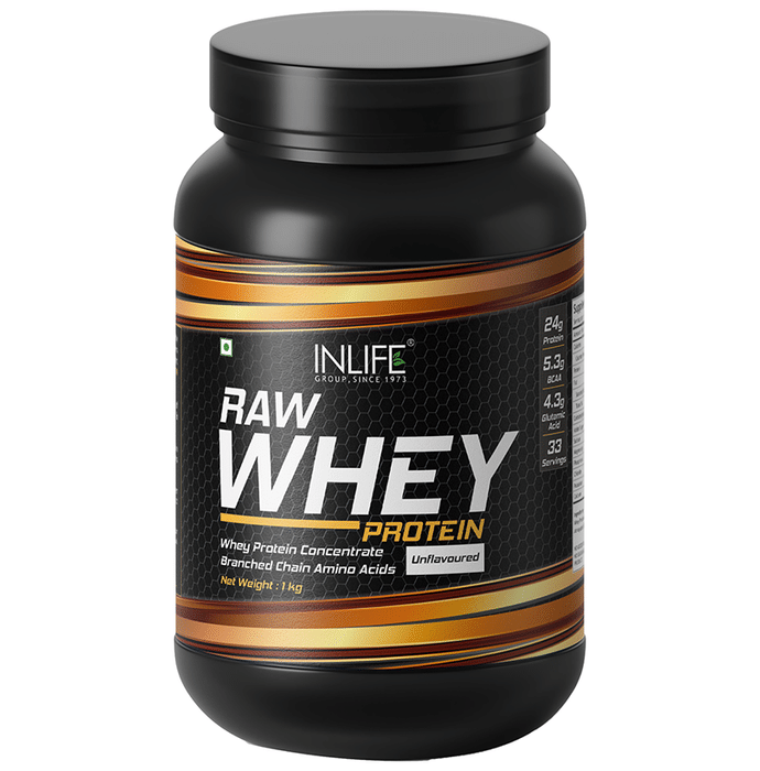Inlife Raw Whey Protein Unflavoured is an excellent source of high-quality protein and is a complete, high-quality protein, containing all of the essential amino acids. These qualities make it one of a very good dietary sources of protein available. | Key Ingredient: Whey Protein | Key Benefits: It is very digestible and absorbed from the gut quickly compared to other types of protein Whey protein has a very high nutritional value and a source of high-quality protein Protein have been shown to reduce blood levels of C-reactive protein, indicating that it can help reduce inflammation | Direction For Use : Use as directed on the label. | Safety Information : Store in a cool and dry place Keep out of the reach of children Read the label carefully