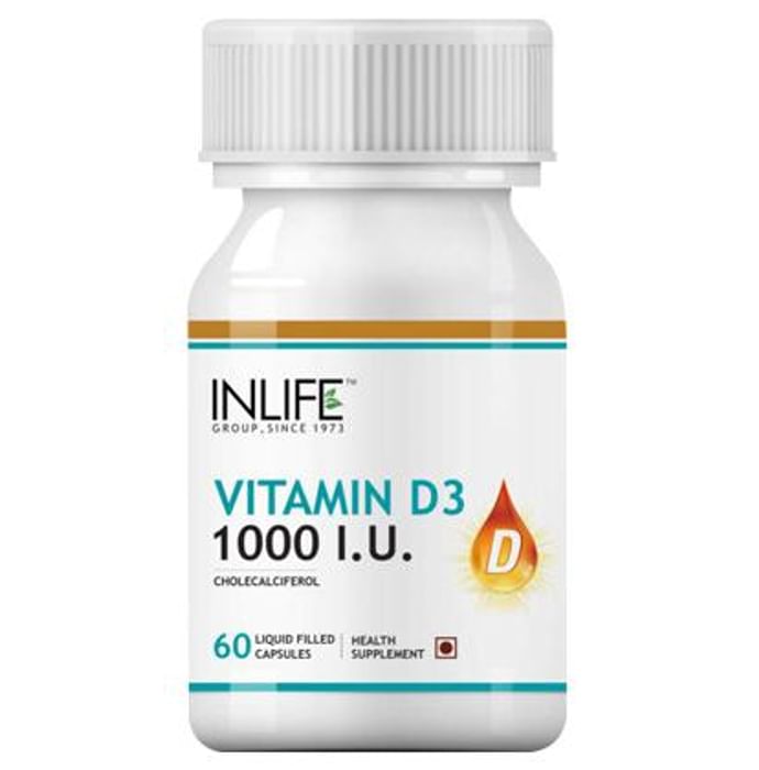 Inlife Vitamin D3 1000IU Capsule Inlife Vitamin D3 1000 I.U. capsule helps enhance calcium absorption by regulating concentrations of calcium and phosphorus in the body to provide essential support for bones and teeth. Key benefits: It provide essential support for bones and teeth. It promote healthy immune system. It improves healing power of the body. Safety Information: Pregnant or lactating women, diabetics and people with known medical conditions should consult with a physician prior to taking dietary supplements. Direction of use: Take 1 capsule daily after meals or as directed by a healthcare professional. Use under medical supervision