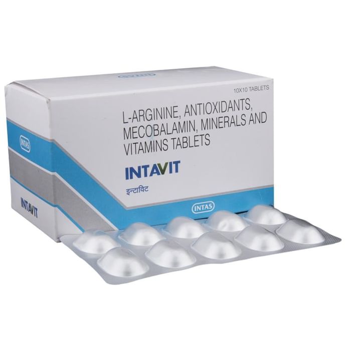 Intavit Tablet Intavit Capsule contains Multivitamins, Multiminerals and Antioxidants. Vitamins are substances that your body needs to function normally. They are natural substances required by the body to grow and develop. Vitamins are contained in food and it is said that a well-balanced diet provides all of the vitamins required. However, there are times, like during pregnancy and childhood, during illness, your body needs more vitamins than usual. It is here multivitamins play a vital role. Antioxidant is a substance that inhibits oxidation or inhibits reactions promoted by oxygen or peroxides which are not required by the body. Benefits of Intavit Capsule: Helps in improving Functional fatigue and poor concentration due to bypassing of one or two meals for the day. Increases utilization of vitamins, minerals and trace elements in fever, infection, cancer, surgical operations and critically ill cases. Enhancement of body immunity in the convalescent stage after surgical operations, acceleration of wound healing, and in debilitating cases. Increased loss of vitamins, minerals and trace elements from the body in burns, diarrhoea, bleeding, and renal impairment. Used to enhance liver function competency. Helps in keeping skin healthy due to its antioxidant property. Use under Medical Supervision.