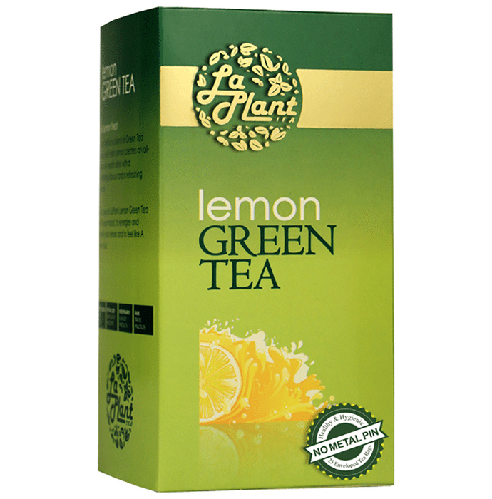 Laplant Lemon Green Tea Bag Laplant Green Tea Bag is a powerful blend of special ingredients which helps boost metabolism and energy which helps lose weight effectively while working out. It detoxifies the body and removes harmful toxins from the body. It is available in Lemon, Honey + Lemon, Tulsi, Masala, Pure, and Lemon + Ginger, and Lemon + Mint + Ginger.