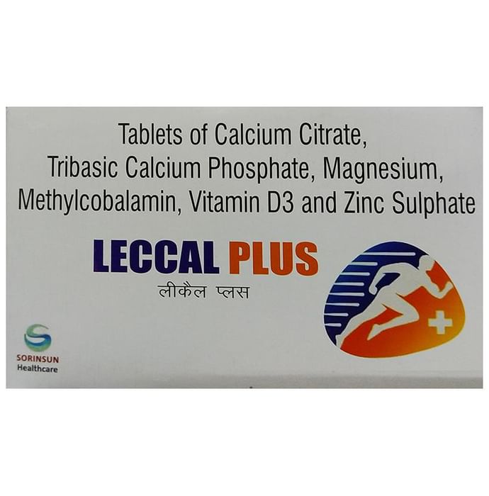 Leccal Plus Tablet can help maintain bones, joints, muscles and teeth health. It can help combat calcium deficiencies in the body. It can support general health and well-being. Moreover, it can help deal with the weakness of bones and joints. | Key Ingredients: Calcium Citrate Tribasic calcium phosphate Magnesium Methylcobalamin Vitamin D3 Zinc sulphate | Key Benefits: This tablet may help improve the strength of bone and joints It can support the proper functioning of the body It may help enhance bone density and functions This formulation may provide relief from pain and inflammation of joints | Directions For Use: Use as directed on the label or as advised by your healthcare provider. | Safety Information: Read the label carefully before use Do not exceed the recommended dosage Store in a cool and dry place away from direct sunlight Keep out of reach of children