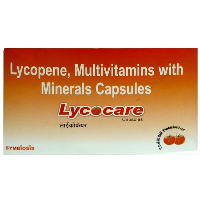 LYCOCARE CAPSULE contains Lycopene , Selenium Dioxide ,Tocopherol ,Vitamin A ,Vitamin C,Zinc Sulphate . Lycopene is a powerful antioxidant that protect cells from damage. Vitamin A plays an important role in the visual process. Vitamin A also participates in the formation and maintenance of the integrity of epithelial tissues and mucous membranes. Deficiency may cause skin changes, resulting in a dry rough skin, with lowered resistance to minor skin infections. USAGE · Acts as a health supplement/capsules for preventing many chronic diseases like Cardiovascular disorder, diabetes etc. · It is an ideal supplement to be taken for long periods for general health benefits. · Prevents formation of cataract and macular degeneration and Submucosal Fibrosis. ·Co-therapy in General Weakness, Degenerative Disorders, Deficiency Disorders, Dietary Supplement · Ideal supplement for eyes and skin Use under medical supervision.
