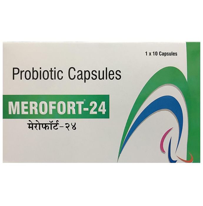 Merofort -24 Capsule is beneficial for enhancing immune system performance. It helps to support the body's digestive and cardiovascular systems. It may also promote weight management. | Key Ingredients: Probiotics | Key Benefits: Merofort -24 Capsule is beneficial for improving the function of the immune system It aids in providing support to the digestive and cardiac functions of the body It may also aid in weight management and reduce inflammation and allergies | Directions For Use: Use as directed on the label or as advised by your physician. | Safety Information: Read the label carefully before use Do not exceed the recommended dosage Store in a cool and dry place away from direct sunlight Keep out of reach of children