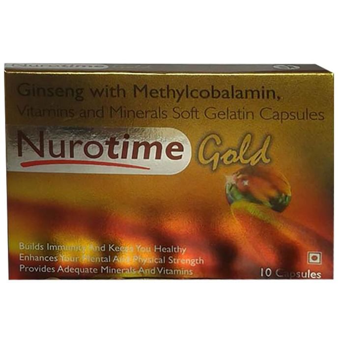 Nurotime Gold Soft Gelatin Capsule Nurotime Gold Soft Gelatin Capsule It is a dietary supplement formulated with multivitamins, multi-minerals, methylcobalamin and ginseng that promote overall health and well-being. It has potent antioxidants that protect the body against free radicals and boost immunity. It helps to fill the nutritional gaps, enhance energy levels and promote growth and development