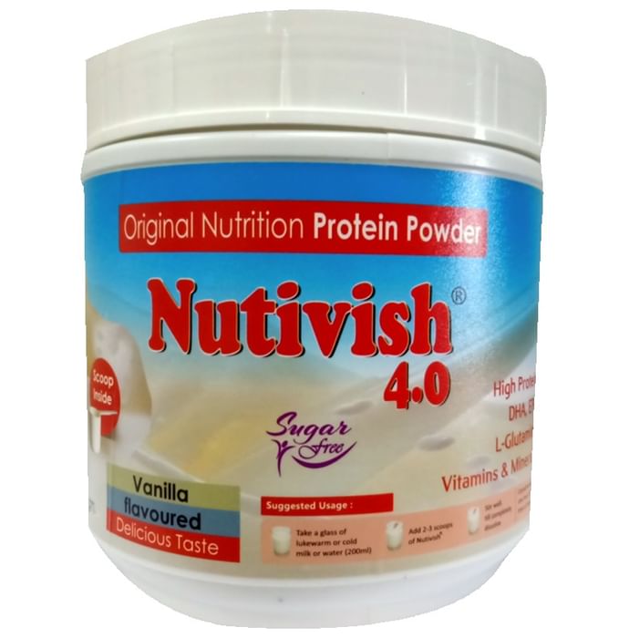 Nutivish Original Nutrition Protein Powder Vanilla Sugar Free Nutivish Original Nutrition Protein Powder is a sugar-free, whey protein with a vegetarian source of added Omega 3 fatty acids (DHA and EPA) and L-Glutamine. It provides high energy and essential nutrients to maintain and restore nutritional status during recovery and general weakness.