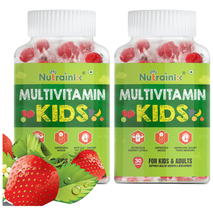 Nutrainix Multivitamin Kids for Kids & Adults Gummy (30 Each) Nutrainix Multivitamin Kids for Kids & Adults Gummy (30 Each) helps to provide the little ones with the nourishment they need to stay happy and healthy. Top gummy vitamins come in flavours that kids love. This kid's vitamin gummy has 12 vitamins and 4 minerals to support kids' health. It promotes healthy bones and teeth. In addition to this, it helps to improve the immunity level of the body.
