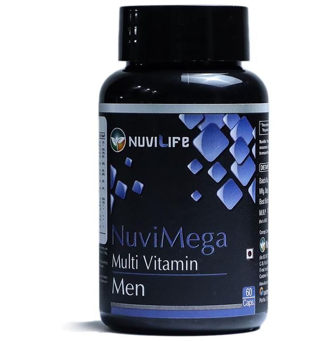 Nuvilife Nuvimega Multivitamin Men 750mg Capsule Nuvilife Nuvimega Multivitamin Men 750mg Capsule helps fulfill the micro-nutrients requirements of active men, improves metabolism, strengthens immunity and improves stamina. It also promotes vitality in men. It contains essential multivitamin and minerals providing you with 39 rich key ingredients. A high-quality, multivitamin blend for men that fills in nutritional gaps to boost energy and performance.