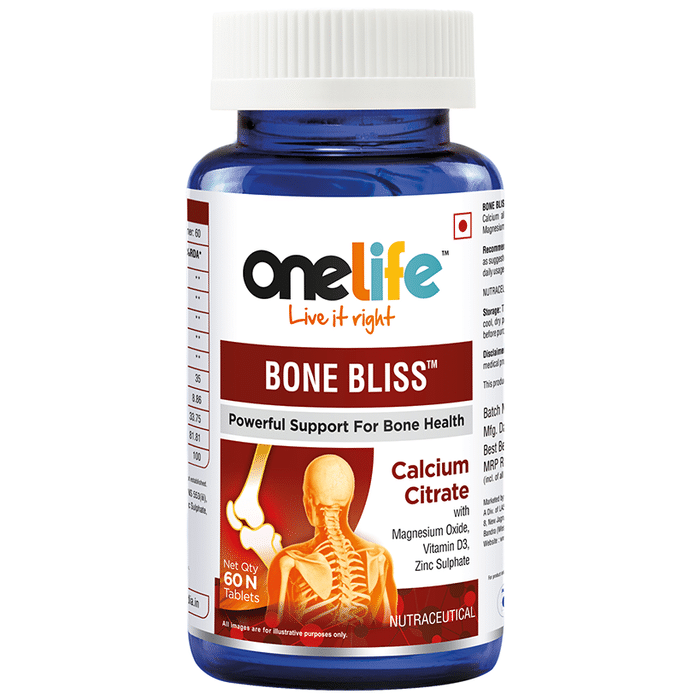 OneLife Bone Bliss Tablet OneLife Bone Bliss Tablet is important for bone health for men and women of all ages. It is a perfect blend of nature and science and consists of calcium along with other active bone nutrients such as Vitamin D, Zinc, Magnesium, and Vitamin K2 that help maintain bone health. It is specially formulated to help you take care of your bone health by strengthening and protecting them in the right way.