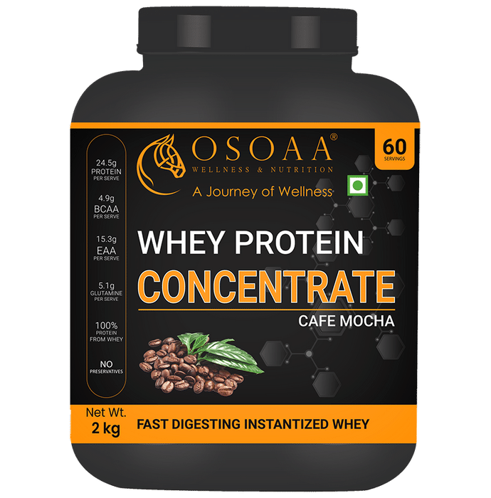 OSOAA Whey Protein Concenrate Cafe Mocha OSOAA Whey Protein Concenrate This whey protein concentrate contains complete protein with all 14 essential amino acids that can help improve muscle protein synthesis and build lean muscle mass. It is rich in EAAs, BCAAs, and Glutamine which are muscle-building blocks and may enable faster recovery post workouts. It can increase immunity and bodily resistance.