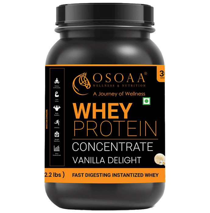 OSOAA Whey Protein Concenrate Vanilla Delight OSOAA Whey Protein Concenrate This whey protein concentrate contains complete protein with all 14 essential amino acids that can help improve muscle protein synthesis and build lean muscle mass. It is rich in EAAs, BCAAs, and Glutamine which are muscle-building blocks and may enable faster recovery post workouts. It can increase immunity and bodily resistance.