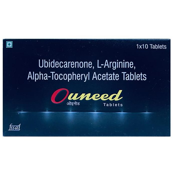 Ouneed Tablet helps manage wounds and cardiovascular disease. It helps to regulate the heartbeat, increase overall oxygen level, and maintain the energy level in the body. It boosts immunity and helps protect from infectious diseases | Key Ingredients: L-Arginine Alpha-tocopheryl acetate | Key benefits: L-arginine helps manage blood flow in an individual with peripheral and arterial disease It contains antioxidant properties that prevent the cells from radical damage, oxidation, pollutant and toxins It helps with cardiovascular disease, regulates heartbeat and helps maintain the overall health of the heart It can help to increase blood oxygen levels and contains anti-inflammatory properties It boosts the immunity and general wellbeing of the body | Direction For Use: As directed by the physician | Safety Information: Store in a cool and dry place Keep away from direct sunlight Read the label carefully before use Keep away from the reach of children