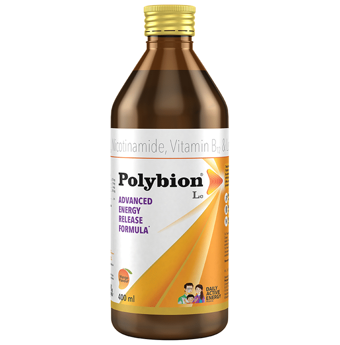 Polybion LC, Lysine vitamin B-complex syrup, for energy and appetite, mango flavour | Key Ingredients of Polybion Lc Mango Syrup: Each 5 ml contains 0.75 mg Pyridoxine hydrochloride 2 mcg Cyanocobalamin 375 mg Lysine hydrochloride 15 mg Nicotinamide Sorbitol solution 70% | Key Benefits of Polybion Lc Mango Syrup: Polybion LC's lysine and vitamin B complex formula- Releases energy Stimulates appetite | Directions For Use: Children: 5 ml twice daily or as directed by the physician Adults: 10 ml twice daily or as directed by the physician