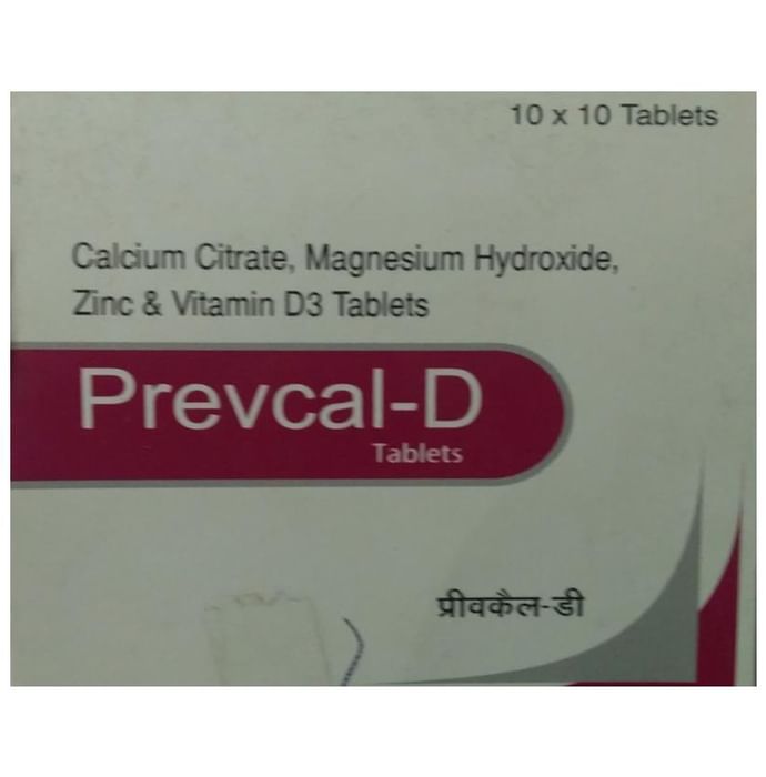 Prevcal -D Tablet Prevcal D Tablet contains Calcium, Vitamin D, Magnesium and Zinc. Benefits of key ingredients: Calcium is used to prevent or treat low blood calcium levels in people who do not get enough calcium from their diets.Calcium is important for growth and development of bones. Vitamin D3 that is used in the absorption of calcium in the blood. Vitamin D3 helps in processing of essential minerals in the body like Calcium and Phosphorus. Lack of Vitamin D3 results in bone weakening, bone pain, and skin diseases. Other minerals like zinc, magnesium are necessary for bone mineralization and bone matrix formation Prevcal D is a nutritional supplement which can be taken by people who have low levels of calcium in their blood. Prevcal D is used in elderly people to keep bones healthy and strong, and is even effective in Chronic arthritis and Osteoporosis Use under medical supervision