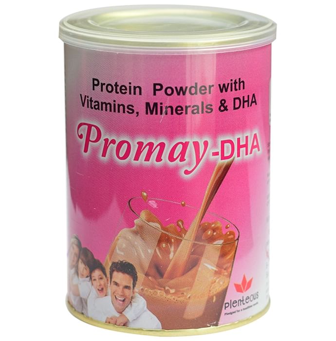 Promay-DHA Powder Chocolate comprises protein with delicious chocolate flavour for fitness enthusiasts and helps to build body muscles and replenish protein deficiency. It is also beneficial for weight gainers, athletes, bodybuilders and sports persons. It helps boost immunity and stamina in the body | Key Ingredients: Vitamin D Zinc Magnesium oxide | Key Benefits: It is rich in protein and provides instant energy, and also helps boost metabolism It contains pure whey protein that offers longer-lasting strength and stamina to build body muscles It helps to replenish protein deficiency in the body It includes a delicious chocolate flavour that helps to promote fitness and strength It contains an amino acid that helps to prevent the cells from oxidation It improves health and overall well-being of the body | Directions For Use: Use as directed by the physician | Safety Information: Keep away from direct sunlight Store in a cool and dry place Read the label carefully before use Keep away from the reach of children