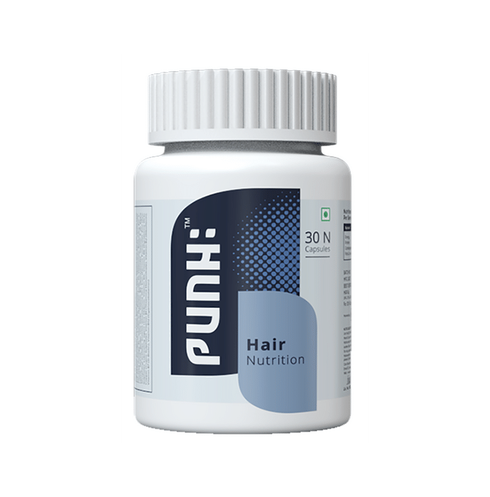 Punh Hair Nutrition Capsule is a mighty combination of rich natural extracts with supportive additives like amino acids, minerals and vitamins in accurate concentrations. The formulation works as a hair fertiliser to combat hair loss and promote hair growth at the root. It restores the natural growth cycle and maintains the hair luster. | Key Ingredients: Pumpkin seed extract Vitamin C Vitamin E Vitamin B12 Nettle leaf extract Omega 3 Rosemary extract Biotin | Key Benefits: It helps prevent hair loss It promotes hair growth It strengthens the hair It helps maintain the natural shine of the hair | Directions For Use: For best results consume 1 capsule daily for 3 months. | Safety Information: Read the label carefully before use Do not exceed the recommended dosage Store in a cool dry place away from direct sunlight Keep out of the reach of children
