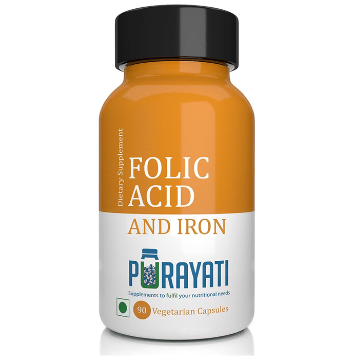 Purayati Folic Acid and Iron Vegetarian Capsule Purayati Folic Acid and Iron Vegetarian Capsule strengthens the immune system with power-packed multivitamins and multiminerals. It prevents cell structure damage due to pathogens and protects cells from free radicals with multivitamins' anti-inflammatory and antioxidant properties.