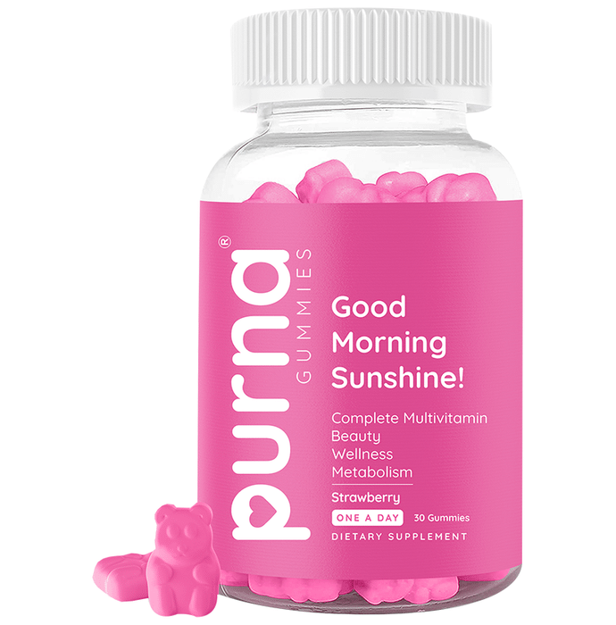 Purna Multivitamin Strawberry Gummies for Women made to nourish your body, heart and bones. PURNA Women’s Multivitamin gummies are naturally delicious, scientifically formulated and 100% gluten free gummy vitamins. The blissful strawberry flavored once-a-day multivitamin is as much of a multi functional as you are, with B vitamins to support energy, Vitamin D & calcium to support bone health, along with vitamins A, C & E. These gummy multivitamins are a powerful blend of essential nutrients to up your overall wellness and help fill the gaps when your eating habits are a little less than perfect choose to see the good stuff. Purna Gummies make it easy to be healthy and maintain your metabolism to keep you on the right track. | Key Ingredients: Vitamins A, B, C, D, E, B12 8 Minerals (Iron, Zinc, Magnesium, others) Corn syrup Sugar Gelling agent (INS440), Acidity reg | Key Benefits: Purna Complete Multivitamin Gummy: Purna multivitamin gummies for women contain over 20 Essential Ingredients and 8 Minerals that help support daily energy, glowing skin, bone health and weight management Improves skin health, stronger hair, and immune health 100% RDA OF Multi-vitamins and minerals and purna covers your complete dietary requirements by giving 100% Recommended Daily Allowance of most of essential Vitamins & Minerals Purna gummies provide vitamins and wellness boosts Purna gummy vitamins are fun, easy and rewarding to fit into your daily nutritional and healthy lifestyle goals 100% Vegetarian Product: NO chemicals, NO allergens, NO Parabens, NO contaminants and NO GMO | Directions For Use: Consume 1 gummy bear per day. Chew gummy thoroughly and completely before swallowing. | Safety Information: Read the label carefully before use Store in a cool dry place away from direct sunlight Keep out of reach of the children