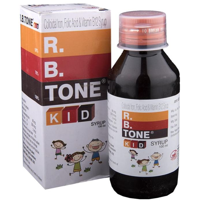 R.B Tone Kid Syrup is useful in iron deficiency anaemia, general weakness, worm infestations and cognitive impairment. | Key Ingredients: Ferrous Gluconate Folic Acid Calcium Lactate Vitamin B12 | Key Benefits: Provides complete formula for treatment of anaemia Essential for formation of red blood cells Calcium is required for proper growth and development of bones Useful for treatment of iron deficiency anaemia of varied origin Provides faster correction of iron deficiency | Directions For Use: Take as directed by the physician | Safety Information: Store the formulation in cool and dry place Read the label carefully before use Do not exceed the recommended dose Keep out of the reach of children