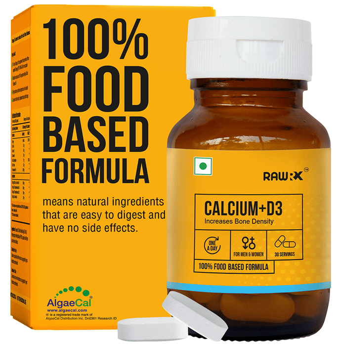 RawRX Organic Calcium and Vitamin D3 Tablet for Men & Women with Vitamin C, Coral Calcium Tablet for Bone Health & Joint Pain is sourced from the superfood algae, sustainably harvested off the coast of South America. Our natural plant-based supplement has calcium and so much more. Our D3 is vegan and soy-free, unlike most D3 supplements. Rather than sourcing D3 from animals, we source our D3 from algae. | Key Ingredients: Organic calcium (Algae calcareous sp.) Vitamin D3 (From lichen, a type of algae) Vitamin C (Acerola fruit extract) 13 Bone building minerals | Key Benefits: These capsules support immune function also regulate mood and reduce depression It is beneficial for improving bone density and calcium deficiency It contains Acerola fruit extract which is a rich source of vitamin C and helps prevent cardiac issues Cholecalciferol in this product is vitamin D3 which is essential for enhancing the calcium absorbing capacity of bones It is made from natural ingredients which have no side effects and are easy to digest This capsule increases bone strength and combats regular fatigue Vitamin D3 is a fat soluble vitamin necessary for optimal calcium absorption, the regulation of bone growth, and also plays a vital role in immune function Acerola is most well-known for being extremely rich in vitamin C | Directions For Use: Read the label carefully before use. | Safety Information: Read the label carefully before use Store in a cool and dry place away from direct sunlight Keep out of reach of children