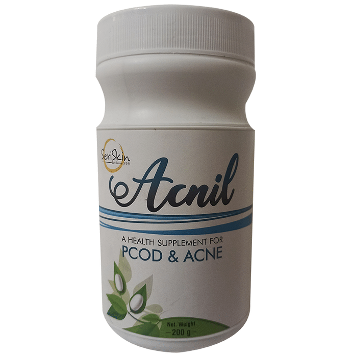 Seriskin Acnil Powder is an ayurvedic medicine which is mainly helpful for dealing with pimples and small eruptions with whiteheads | Key Ingredients: Protein Carbohydrate Zinc Multivitamins Folic acid | Key Benefits: It is a dietary supplement that helps to promote a healthy face and beautiful complextion It may help to cope with unhealthy complexion due to acne and blemishe It helps to improve the complexion and texture of the skin | Directions for Use: As directed by the physician | Safety Information: Read the label carefully before use Store in a cool and dry place, away from sunlight Keep out of reach of children Don’t exceed the recommended dosage